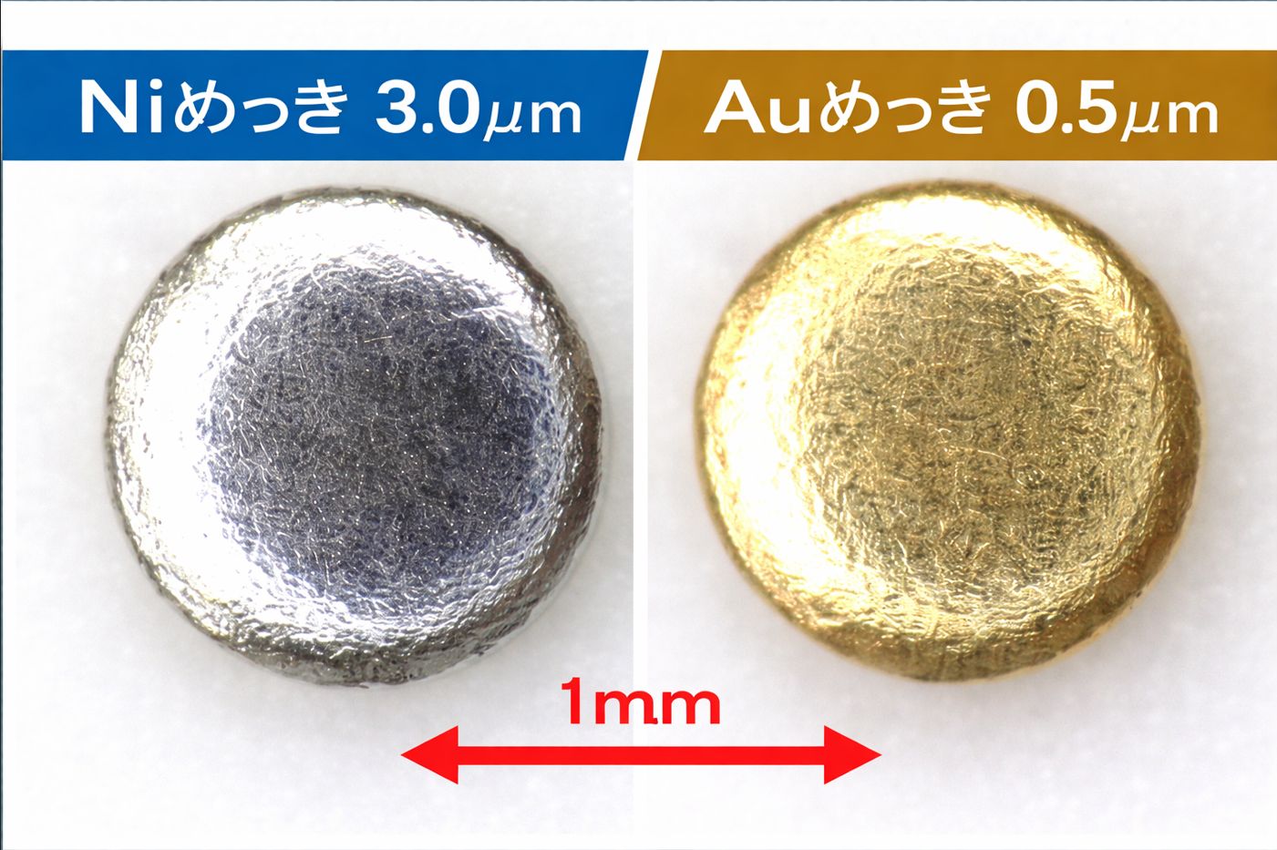 メッキ.comでは、1mm程度の微小部品へのめっきを得意としております。電解ニッケルめっき、電解スズめっき、電解金めっき、電解銅めっき、無電解ニッケルめっき、電解白金(プラチナ)めっきなど、多彩なめっき技術を用い、部品の用途や要求仕様に応じた最適な処理を提供いたします。